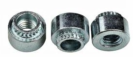 Broaching nuts, also known as PCB nuts due to being commonly applied in printed circuit boards, are designed with a knurled shank that can be pressed into the drilled hole. The shank grips the board with an interference fit by broaching its way into the panel as it is squeezed into the holes.